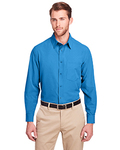 4.7 oz/yd2 / 158 gsm, 92% polyester, 8% spandex woven; Moisture-wicking performance; Spread collar with collar stand; Dyed-to-match pearlized buttons; Adjustable cuffs with button placket; Left-chest pocket; Side vents; Stretch performance; Active fit; Easy care;