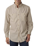 55% cotton 45% polyester rip stop; Wrinkle-resistant; Stain & soil repellant; Chambray contrast in neckband, yoke & cuffs; Button-down collar; 2 button-thru patch pockets; Triple needle sewing;