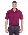 30 singles; 5.6 oz. easy-care 60% cotton, 40% polyester piqué; Heather Gray is 90% cotton, 10% polyester; Relaxed fit; Contoured flat-knit collar and cuffs; Single-needle topstitched neck, shoulders, armholes and sleeves; Double-needle half-moon patch and bottom hem;